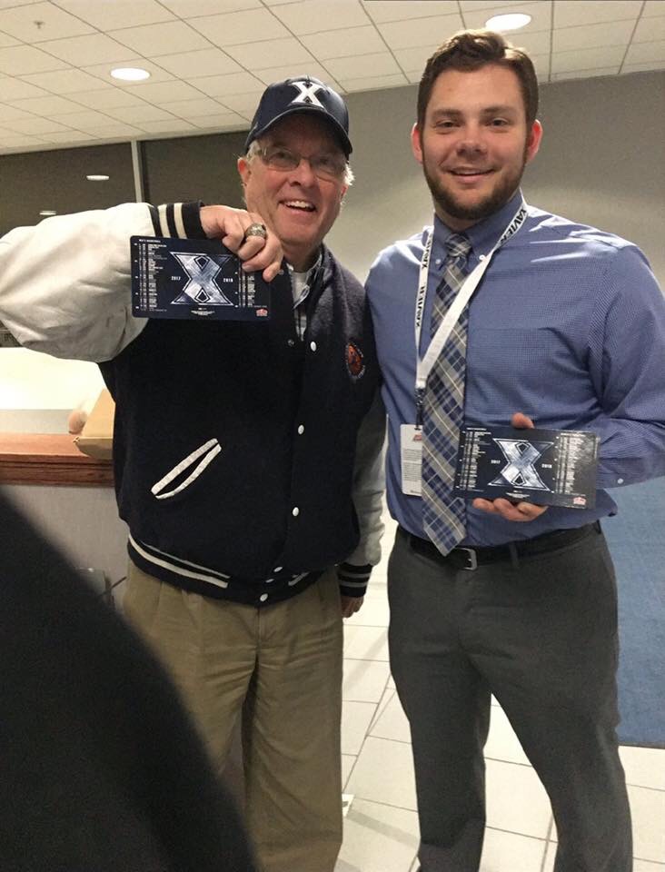 The biggest Xavier University basketball fan I know is Danny O’Malia. He’s pictured above, a year or so ago with my son, Nick, who was interning with the Xavier Athletic Department at the time. When he found out that my oldest son intended to become a Muskie when he graduated from Guerin Catholic, Danny reached out with enthusiasm and made sure that the entire Thieme clan knew that he would be pleased to help Nick in any way with his transition. His genuineness and authenticity are impossible to miss!